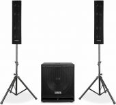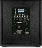 VX880BT-settet er enkelt å sette opp og enkelt å transportere. Dette settet inkluderer en 15" subwoofer og to 8" trekolonnes høyttalere. Begge kolonnehøyttalerne er utstyrt med 4x 4,5" høyttalere og 1x 1" diskant. Den innebygde BT-mottakeren lar deg enkelt strømme musikken din trådløst fra smarttelefonen din, eller du kan bruke den innebygde MP3-spilleren med USB- og SD-spor. Dette aktive høyttalersettet er egnet for mobile DJ-er, karaoke-show, drive-in-show, presentasjoner osv.