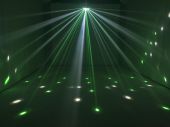 DMX lighting effect with RGBWAP derby, white strobe LEDs, and IR remote control