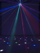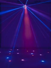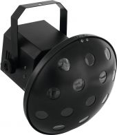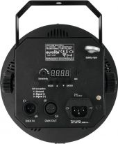 | Power supply: | 100-240 V AC, 50/60 Hz | | Power consumption: | 23 W | | IP classification: | IP20 | | Power connection: | Fixed power supply cord with safety plug | | Device fuse: | 5 x 20 mm, F 1 A fuse replaceable | | Lamp type: | LED lamp | | LED type: | 6 x 3 W high-power R/G/B/W/A/P | | DMX channels: | 10 | | DMX input: | 3-pin XLR (M) mounting version | | DMX output: | 3-pin XLR (F) mounting version | | Control: | Stand-alone; DMX; sound to light via microphone | | Preprogrammed in: | Light´J; LED PC-Control 512; EASY SHOW 1; Light Captain; EASY SHOW 2; Colorchief | | Beam angle: | 115° | | Beam angle (1/2 peak): | 115° | | Housing color: | Black | | Attachment system: | Mounting bracket | | Dimensions: | Width: 27.5 cm Depth: 31 cm Height: 28 cm | | Weight: | 2.20 kg | | Noise classification: | Class 2 (slight noise) | | Legal specifications | | | Special product: | Not designed for household room illumination | | Intended use: | Show effect lighting |