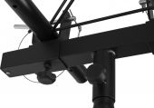 Profesjonell lysbro i aluminium med 3-kant truss, og plass til hele 12 effekter. Ytterst solid, og velegnet til mobil-DJ, orkester og teater. - Leveres med låsepinne til høydejustering