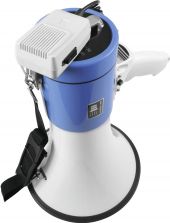 | Power supply: | 12V DC | | Power connection: | Battery/battery pack Mains input via coaxial power connector (M) mounting version | | Battery: | 8 x Baby (C) (not included) | | Power: | Rated: 25W RMS | | Range: | Range up to 800m | | Control elements: | Level control | | Type of speaker: | Horn | | Transport aid: | Shoulder strap | | Color: | White; blue | | Bell (horn) diameter: | 230 mm | | Dimensions: | Length: 39 cm Diameter: Ø 23 cm | | Weight: | 1.30 kg |   |