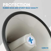|  | Amplify your voice with clarity and power! Unleash the power of communication with our premium range of Vonyx Megaphones. Whether you're leading a demonstration, coordinating an event or addressing a crowd, Vonyx megaphones are designed for crisp clear sound projection with unprecedented reliability. Equipped with advanced technology, each Vonyx megaphone features sturdy construction, ergonomic design and user-friendly operation to suit any environment. From compact models ideal for small gatherings to powerful units that can reach large crowds, there is a Vonyx megaphone for every need. - Portable cone-shaped amplified horn