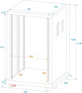 | Maximum load: | 100 kg | | Transport aid: | 4 x castors with 2 locking brakes | | Door: | Without doors | | Material: | Steel (powder-coated) | | Color: | Black, powder-coated | | Mounting height: | Approx. 98 cm (22 U) | | Mounting depth: | 410 mm | | Housing design: | 22 U | | Dimensions: | Width: 56 cm Depth: 45 cm Height: 115 cm | | Weight: | 28.90 kg | |  |  |