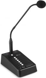 The PMPM10 call station is a stylish, high-quality call station with a stable metal base design, a flexible microphone stem and a unidirectional condenser microphone. It can make calls to selected zones (one to six and all-call) of the PMP series commercial mixer amplifiers. Up to 4 Call Stations can be connected in a loop through arrangement to the same unit, with configurable priority. Connection is via RJ45 terminated Cat-5 cable. Its 6 zone selectors provide a direct command interface for easy control and paging of the area.