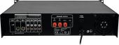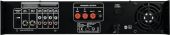 Power supply: | 230 V AC, 50 Hz | Power consumption: | 120,00 W | Output power: | Max. 60 W 60 W RMS | Power connection: | Fixed power supply cord with safety plug | Frequency range: | 80 - 14000 Hz | S/N ratio: | >75 dB Microphone >85 dB line | THD: | <0,5 % at 1 kHz | Cooling: | Cooling fan | Impedance: | Public address systems 100V; 4-16 ohms; Public address systems 70V | Circuitry: | Class AB | Controls: | Power on/off transient; Overvoltage; short-circuit | Equalizer: | Master: 1 x 2-band tone control mono | Connections: | Input: Microphone via 3 x 6.3 mm plug (unbal.) Input: line via 3 x stereo RCA Output: line via 1 x stereo RCA 0,3 V Output: speaker via screw terminal | Material: | Metal | Color: | Black | Housing design: | (19") 48.3 cm rack installation 2 U | Dimensions: | Width: 48,3 cm Depth: 40 cm Height: 8,9 cm | Weight: | 8,10 kg |     |  |  |