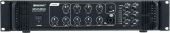 | Power supply: | 230 V AC, 50 Hz | | Power consumption: | 700.00 W | | Output power: | 350 W RMS | | Power connection: | Fixed power supply cord with safety plug | | Frequency range: | 80 - 16000 Hz | | S/N ratio: | >75 dB microphone >85 dB line | | THD: | <0.5 % at 1 kHz | | Cooling: | 1 x temperature-controlled fan , air flow from front to rear | | Impedance: | Public address systems 100V; 4-16 ohms; Public address systems 70V | | Zone output: | 6 adjustable zones | | Circuitry: | Class AB | | Control elements: | Power switch | | Controls: | Current limiting; short-circuit; power on/off transient; power on/off transient; Overvoltage; short-circuit | | Status LED: | Power, fault, level meter | | Connections: | Input: microphone via 1 x 3-pin XLR/6.35mm jack (F) combination socket (mounting version) Input: microphone via 2 x 6.3 mm plug (unbal.) Input: line via 3 x stereo RCA 0.3 V Output: rec. via 1 x stereo RCA Output: speaker via screw terminal | | Equalizer: | Master: 1 x 2-band tone control mono | | Material: | Metal | | Color: | Black | | Housing design: | (19") 48.3 cm rack installation 2 U | | Dimensions: | Width: 48.3 cm Depth: 38.5 cm Height: 8.9 cm | | Weight: | 12.80 kg |