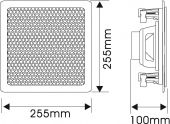 |  | 2-way flush-mount coaxial speaker (220 x 220 mm), LF: 6" HF: 0.5" 100 V, 40 W RMS 2-Wege-Einbaulautsprecher (220 x 220 mm), LF: 6" HF: 0,5" 100 V, 40 W RMS - 2-way coaxial speaker with 15 cm woofer (6) and 1.5 cm tweeter (0.5)