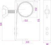 | Product colour | Black | | Material | Metal | | D1 (1mm) | 120mm | | D2 (1mm) | 15 - 51mm | | D3 (1mm) | 10mm | | D4 (1mm) | 88mm | | W (1mm) | 25mm | | Threaded Bolt | M10 | | Max. weight load per piece | 30kg | | Weight (kg) | 0,35 |   |