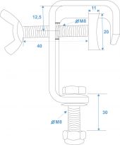 | Maximum load BGV C1 (8-fold): | 10 kg | | Maximum load WLL (4-fold): | 20 kg | | Tube diameter sector: | 22 - 25 mm | | Material: | Steel | | Color: | Silver | | Mounting screw: | M8 | | Dimensions: | Length: 9 cm Width: 2 cm Depth: 9.50 cm | | Weight: | 0.15 kg |  |