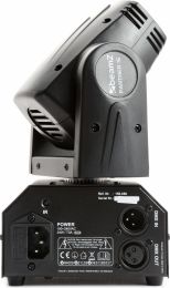 10W 4-in-1 RGBW LED 14 or 16 DMX channels DMX and Stand-alone mode Master/slave synchronization 3 pre-programmed shows IR remote control Sound activated with adjustable sensitivity Auto mode with adjustable speed Adjustable strobe speed 0-100% Dimmer Individual colour control Light source 4-in-1 LED Colours Red, Green, Blue, White LED power (single LED) 10W Quantity of LEDs 1 Beam angle 2 Field angle 3 Illuminance 21.800 lx @ 1m Head movement: Pan 540 Head movement: Tilt 225 Modes Automatic programs, DMX DMX channels 14, 16 DMX connection 3-pin XLR Power plug IEC Power consumption 24W Power supply 100-240VAC 50/60Hz Dimensions (L x W x H) 130 x 130 x 200mm Weight (kg) 2,20