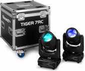 The new Tiger 7RC is a compact moving head that generates impressive light output with its 7R 230W high-intensity discharge lamp. This versatile moving head features a comprehensive range of effects, including colour mixing, a frost effect, various gobos and a prism, giving users precise control over their lighting designs. The Tiger 7RC includes a gobo wheel equipped with 14 patterns plus an open position and a colour wheel with 14 colours plus an open position, offering endless creative possibilities. Enhancing its capabilities further is a 8-facet rotating prism, enabling the creation of captivating and dynamic light displays. Operating seamlessly in DMX or stand-alone mode, the Tiger 7RC offers flexibility in set-up and operation. Designed for simplicity and ease of use! This is a kit of 2 moving heads delivered in a built-to-fit flightcase. - 230W 7R High Intensity discharge bulb