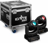 A complete kit of 2 IGNITE220 moving heads supplied in a solid and rugged flightcase. The IGNITE220 is a spot moving head with a linear motorized zoom, equipped with a powerful ultra-bright 220 Watt LED according to the latest technology. This moving heads also features 2 gobo wheels and a 3-facet rotating prism to create stunning 8-color aerial effects. The beam angle of 12 degrees makes this the ideal fixture to use for gobo projection and sharp beam figures. The IGNITE220 is suitable for DMX control in 3 different channel modes, master/slave or stand-alone operation. It includes several show presets, strobe and dimmer functions, and a built-in microphone for sound activation. Perfectly useable for many events and club installs.