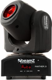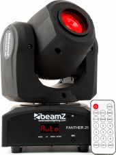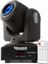 A very compact Panther moving head with bright output. The 12W CREE LED produces a 12° beam. The moving head is equipped with both a colour and gobo wheel for ultimate control. The gobo wheel has 7 different gobos + open and the colour wheel has 7 colours + white. This Panther moving head works in DMX, stand-alone mode or with IR control. When operating in DMX mode you can choose 2 DMX channels modes.