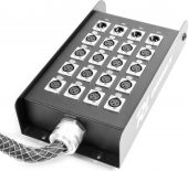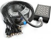 Scene Snake flerkabel med en solid metall sceneboks. Flerkabelen har 24 innganger (hunn) og 4 utganger (hann) på sceneboksen, som gjør det mulig å sende mikrofonsignaler til mikseren og sende ut gulvmonitorer tilbake til scenen. Kabelen er 30 meter lang og takket være høy kvalitet, vil du kunne nyte den i mange år. Perfekt for studio eller live-opptredener. - Profesjonell kabel