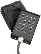 | Cable construction: | Multicore cable | | Cable length: | 30 m | | Plug A: | 12 x 3-pin XLR (M) mounting version; 4 x 3-pin XLR (F) mounting version | | Plug B: | 4 x 3-pin XLR (M); 12 x 3-pin XLR (M) | | Color: | Black | | Dimensions: | Width: 18 cm Depth: 9 cm Height: 26 cm | | Weight: | 13,85 kg |  |