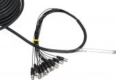 - Highly flexible 30 m mulitcore cable with color coding, splitted into 12 plugs (female) and 4 plugs (male)