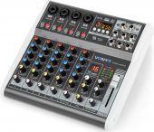 An easy to use and affordable table top design music mixer. With Hi, Mid and Low control for each channel. Individually controllable phantom power per channel making it ideal for live sound and recording purposes.