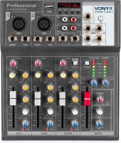 |  | VMM-F mikserne er multifunksjonelle lydmiksere som passer til hjemmeopptak av musikk, webcasting, sang, små fester og mange andre bruksområder. Disse kompakte og lette mikserne er utstyrt med ekko-effekt og har en USB-spiller med display for avspilling av MP3. Det er også en stereo-effekt (Jack) tilkobling for å koble til en ekstern effektprosessor. Perfekt for kafeer, barer, konserter, sceneproduksjoner og hjemme-karaoke oppsett. - Multifunksjonell 4-kanals musikkmikser