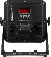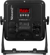 | Product colour | Black | | Light source | 4-in-1 LED | | Colours | Red, Green, Blue, Amber | | LED power (single LED) | 10W | | Quantity of LEDs | 24 | | Beam angle | 21° | | Illuminance | 38.408 lx @ 1m | | Flash rate per second | 1 - 24Hz | | DMX channels | 4, 8, 10 | | DMX connection | 3-pin XLR | | Modes | Automatic programs, DMX, Manual | | IP rating | IP65 | | Cooling | Convection | | Display | LED | | Power plug | P-Con TR1 | | Power consumption | 2.51 - 1.305A | | Power supply | 100-240VAC 50/60Hz | | Dimensions (L x W x H) | 270 x 140 x 300mm | | Weight (kg) | 5,20 | | Included accessories | Mounting bracket, Power cable | pdf