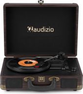Enjoy the authentic sound of vinyl using this Audizio RP116 record player. This stylish briefcase, covered in a PU leather finish, is lightweight and allows listening to music without having to connect it to a speaker system. Connects wirelessly to speakers, headphones and other devices equipped with BT wireless technology or to wired audio systems and powered speakers. With the built-in BT receiver, digital music can also be streamed wirelessly from a smartphone, tablet PC or other BT compatible device and can be listened to via the stereo speakers.