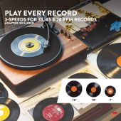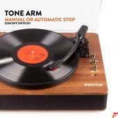 Fenton RP162 platespilleren er en allsidig vintage platespiller med BT streaming og USB-funksjon. Du kan konvertere vinyl til digitale filer selv gjennom direkte USB-opptak. Den kobles trådløst til høyttalere, hodetelefoner og andre enheter utstyrt med BT trådløs teknologi, eller til kablede lydsystemer og aktive høyttalere. Med den innebygde BT-mottakeren kan digital musikk også strømmes trådløst fra en smarttelefon, nettbrett eller annen BT-kompatibel enhet og lyttes til via stereohøyttalere. Denne høykvalitets platespilleren har et solid håndlaget trehus og er utstyrt med et avtakbart gjennomsiktig støvdeksel.
