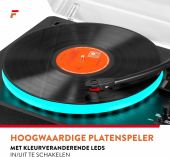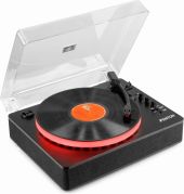 |  | Gjør deg klar til å bli fortryllet når RP162LEDs fargeskiftende LED-platespiller legger til en helt ny dimensjon til din vinyllytteopplevelse. Denne trehastighets platespilleren kan spille 33, 45 og 78 rpm-plater og har et moderne trehus i kombinasjon med en luksuriøs stofffinish. Den kobles trådløst til høyttalere, hodetelefoner og andre enheter som er utstyrt med BT trådløs teknologi, eller til kablede lydsystemer og aktive høyttalere. Med den innebygde BT-mottakeren kan digital musikk også strømmes trådløst fra en smarttelefon, nettbrett eller annen BT-kompatibel enhet og lyttes til via stereohøyttalere. - Høykvalitets platespiller med fargeskiftende LED-lys