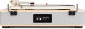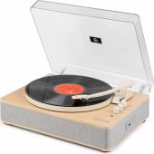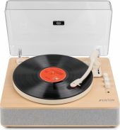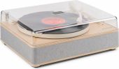 Med den indbyggede BT-modtager kan digital musik også streames trådløst fra smartphone, tablet eller andre BT-kompatible enheder og afspilles via pladespillerens stereohøjttalere. Denne pladespiller i høj kvalitet har et solidt, håndlavet træchassis og er udstyret med et aftageligt transparent støvlåg, som beskytter pladespilleren, når den ikke er i brug.