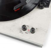 | Produktfarge | Marmor | | Avspillingsalternativer | BT-strømming, Vinyl | | Utgangstilkoblinger | RCA | | Hastighetsinnstillinger (RPM) | 33, 45, 78 | | Utgangseffekt | 100W | | Strømforsyning | 100-240VAC 50/60Hz (12V adapter) | | Dimensjoner (L x B x H) | 361 x 262 x 465 mm | | Vekt (kg) | 5,40 | pdf