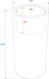 | Material: | PE ND polyethylene; aluminum | | Color: | Brown, high-gloss | | Inside dimensions: | 25 cm x Ø 24 cm | | Border width: | 3 cm | | Material thickness: | 3 mm | | Dimensions: | Height: 120 cm Diameter: Ø 30 cm | | Weight: | 4.70 kg |