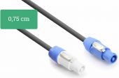 This cable is a powerconnector extension power cable of 0,75 meters, type A/B. It allows you to a slave device. For an optimal connection, this cable is provided with 3x 1.5 mm² conductors. - Professional connectors