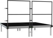 Denne håndrekken er designet for å passe til Deck750-profilen. Med 2 håndstramme koblinger er den rask og enkel å installere. Håndrekkene er utstyrt med en ekstra lav tverrbjelke for å forhindre mindre gjenstander fra å skli av scenen (for eksempel flykasser). Nærliggende håndrekk kan kobles sammen med et 2-punkts tilkoblingssystem for ekstra stabilitet. - Utstyrt med scene monteringsmateriale
