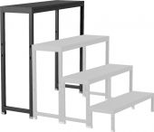 Modulære trapper med alle trinn av samme høyde; tilgjengelig i fire forskjellige høyder. Trappene har justerbare føtter som gjør det mulig å plassere og nivåere trappene på ujevne overflater. Trappene er sveiset av stålprofiler, trinnene er laget av kryssfiner og har vår spesielle "Hexa" anti-skli belegg for å sikre maksimalt grep, noe som gjør den egnet for både innendørs og utendørs bruk. - Fjerde trinn i oppsettet