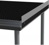 Aluminium sokkelprofil festeskinne med sparkelist for å sikre at rullende materialer ikke faller av scenen. Kan også brukes til å feste sceneskjørt til scenegulvet. Ferdig med borrelås og tilkoblingspunkter.