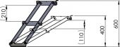 | Product colour | Aluminium | | Leg height | 40 - 60cm | | Dimensions (L x W x H) | Total width step: 82cm | | Dimensions step | 75 x 25cm | | Weight (kg) | 16,50 |
