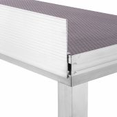 Aluminium skirting profile fixing strip with kick-toe boards to secure rolling materials from falling of the stage. With the ability to attach stage skirts to the stage decks. Prefinished with hook-and-loop fastener and connection points.