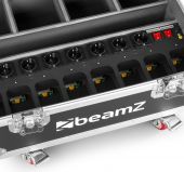 BeamZ FCC10 Combi-ladeflykasse er den perfekte løsningen for å trygt transportere og lade opp BBP5X trådløse batteri opplysningsarmaturer. Denne holdbare, rullende veikassen med lette håndtak er den perfekte løsningen for mobil bruk. Når showet er over, koble enkelt armaturene til den interne lademodulen og bruk den eksterne pluggen for å koble direkte til standard veggspenning. I den andre seksjonen kan du lade opptil 8 hurtigskiftbare batteripakker. Neste dag er armaturene og ekstra batteripakker fullt ladet og klare til å brukes igjen. Hver kasse kan holde opptil 8 armaturer og 8 batteripakker med nok plass til alle strømkabler.