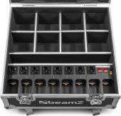 The BeamZ FCC10 Combi Charging Flightcase is the perfect solution for safely transporting and charging BBP5X wireless battery uplight fixtures. This durable, rolling road case with easily handles is the perfect solution for mobile use. When the show is over, simply connect the fixtures to the internal charging module and use the external plug to connect directly into standard wall voltage. In the other section you can charge up to 8 quick-change battery packs. The next day, your fixtures and extra battery packs are fully charged and ready to go again. Each case holds up to 8 fixtures and 8 battery packs with enough space for all power cables. - Sturdy flightcase