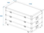 Maximum load: | 150 kg | Removable covers: | 1 pc/pcs | Aluminum profile frames: | 20 mm | Case handles: | 6 pc/pcs | Lock: | Butterfly lock: 12 pc/pcs | Transport aid: | 4 x castors with 2 locking brakes | Use of brands: | Branded hardware | Material: | Birch multiplex, 7 mm | Color: | Dark brown, laminated | Compartment dimensions: | 1,13 m x 8,5 cm x 9 cm | Inside dimensions: | 1,13 m x 40,5 cm x 16 cm | Dimensions: | Width: 1,19 m Depth: 44 cm Height: 84 cm | Weight: | 34,70 kg |