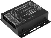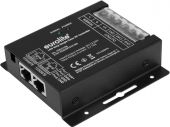 | Power supply: | 12/24V DC | | Power consumption: | Max. 360 W 12 V DC Max. 720 W 24 V DC 120 W 12 V DC per channal 240 W 24 V DC per channal | | Output current: | Max. 3 x 10 A per channal | | Power connection: | Via screw terminal | | Control: | Wireless remote control | | Connections: | Screw terminal | | Carrier frequency: | 433,920 MHz | | Range: | Range up to 20m | | Dimensions: | Length: 9 cm Width: 9 cm Height: 2,4 cm | | Weight: | 300 g | | Remote control | | Battery: | 3 x 1.5 V AAA Micro LR03 alkaline manganese built-in | | Dimensions: | Height: 2,2 cm |     |