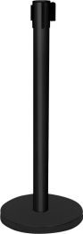 |  | Barrier system with black metal surface and retractable strap - Variable use as a guidance system, for cordoning off certain areas and for designing inviting entrance areas
