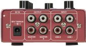 Input chanel: 2 x stereo via RCA, channel control via rotary dial, 2-band tone control EQ Input chanel: 1 x mono via jack, channel control via rotary dial Master output: 1 x stereo with line-USB switch via RCA, channel control via rotary dial