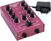 Input chanel: 2 x stereo via RCA, channel control via rotary dial, 2-band tone control EQ Microphon chanal: 1 x mono via jack, channel control via rotary dial Master output: 1 x stereo via RCA, channel control via rotary dial Headphones output: , channel control via rotary dial