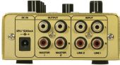 Input chanel: 2 x stereo via RCA, channel control via Rotary dial, 2-band tone control EQ Input chanel: 1 x mono via Jack, channel control via Rotary dial Master output: 1 x stereo with Line-USB switch via RCA, channel control via Rotary dial
