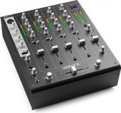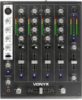4-channel quality DJ mixer with additional attractive features, such as USB input, 3.5mm mini-jack input, talkover switch, adjustable booth output, replaceable crossfader etc. It makes the mixer the best in its category. - USB input