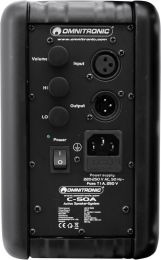 | Power supply: | 230 V AC, 50 Hz | | Protection class: | Protection class I | | Power connection: | Mains input via IEC connector (M) mounting version power supply cord with safety plug (provided) | | Device fuse: | 5 x 20 mm, T 1 A fuse replaceable | | Power: | Program: 80W Rated: 50W RMS | | Frequency range: | 50 - 20000 Hz | | Sensitivity: | 89 dB (1W/1m) | | Attachment system: | Mounting bracket | | Control elements: | Level control, tone control, power switch | | Status LED: | Power | | Connections: | Input: line via 1 x 3-pin XLR (F) mounting version Output: 1 x 3-pin XLR (M) mounting version | | Speaker: | 1 x woofer 5" Basket material: steel Conematerial: cardboard/paper 1 x tweeter 1" | | Material: | ABS Acrylonitrile butadiene styrene | | Color: | Black, scratchproof and shockproof | | Dimensions: | Width: 18 cm Depth: 16.6 cm Height: 23 cm | | Weight: | 6.30 kg |     |