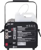 | Power supply: | 230 V AC, 50 Hz | | Power consumption: | 800 W | | Power connection: | Mains input via IEC connector (M) mounting version power supply cord with safety plug (provided) | | Output volume: | Approx. 180 m³/min | | Tank capacity: | 5.0 l removable tank | | Fluid consumption: | Approx. 180 ml/min | | DMX channels: | 1 | | DMX input: | 1 x 3-pin XLR (M) mounting version | | DMX output: | 1 x 3-pin XLR (F) mounting version | | Control: | DMX | | Housing color: | Grey | | Dimensions: | Width: 27.6 cm Depth: 50.5 cm Height: 28 cm | | Weight: | 11.70 kg | | Noise classification: | Class 2 (slight noise) | | Device | | | Control: | Wired remote control |  |  |  |