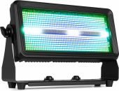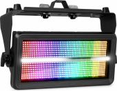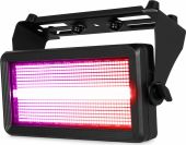 BS1100IP er en kraftfuld multi-brugsarmatur, specielt designet til brug som strobe eller blinder, takket være de 768 SMD-LEDs. LED-panelet er opdelt i 96 sektioner og kan blinke i enhver ønsket farve takket være dets RGB-blandingssystem. Denne strobe er også udstyret med en række på 128 hvide SMD-LEDs i midten af armaturet, som kan styres i 16 forskellige sektioner for at skabe det traditionelle strobe-udseende. BS1100IP gør det muligt at skabe unikke, farverige effekter, og betjeningen er nem via DMX eller i stand-alone mode med automatisk funktion. Støv- og vandafvisende med IP65-klassificering, hvilket garanterer pålidelig ydeevne under alle vejrforhold. Velegnet til alle typer indendørs og udendørs shows og events.