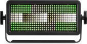 The BS384 is a multi-use fixture and is specially designed to be used as a strobe, thanks to the 384 SMD LEDs. The LED panel is divided in different sections and can flash in any colour you desire thanks to its RGB mixing system. This fixture is also equipped with a strip of 128 white SMD LEDs in the centre of the fixture, controllable in different sections to create the traditional look of a strobe. The BS384 makes it possible to create unique colourful effects and control is easy via DMX or in stand-alone mode with automatic function. Suitable for all kind of shows and events.