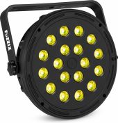 | Product colour | Black | | Light source | 3-in-1 LED | | Colours | Red, Green, Blue | | Quantity of LEDs | 18 | | Beam angle | 22° | | Field angle | 40° | | Illuminance | 2.161 lx @ 1m | | IP rating | IP20 | | Modes | Automatic programs, Manual | | Power consumption | 0.109 - 0.068A | | Power supply | 100-240VAC 50/60Hz | | Dimensions (L x W x H) | 50 x 210 x210 | | Weight (kg) | 0,36 |