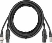 | Product colour | Black | | IP rating | IP65 | | Connections | Powerconnector Tr IP65 (A), Powerconnector Tr IP65 (B), 5-pin XLR IP65 (M), 5-pin XLR IP65 (F) | | Lead length | 5m | | Power cable | 3x 1.5mm² | | Conductor | 8x0.2mm | | Outer diameter | 10.8mm | | Shielding | 64x0.08mm | | Impedance | 120 Ohm | | Weight (kg) | 0,80 |   |  |  |  | |